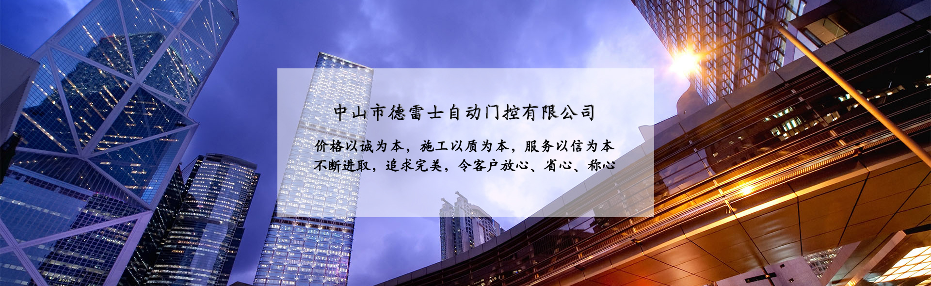 中山市德雷士自動門控有限公司代理中山松下自動門、中山松下感應門、及其旗下品牌松下(Panasonic)自動門、旋轉(zhuǎn)門、型材門、松下門禁系統(tǒng)、地彈簧、閉門器等系列產(chǎn)品。 松下Panasonic一直致力于憑借不斷創(chuàng)新的技術營造為各個區(qū)域的用戶做出最佳解決方案,在自身領域處于領先地位;松下自動門控系統(tǒng)廣泛應用于寫字樓、機關單位、大型企業(yè)、學校、醫(yī)院、智能小區(qū)等領域。在用戶心中有良好的口碑及信譽度。 松下(Panasonic)自動門控系統(tǒng)包含:自動感應門、旋轉(zhuǎn)門、90度平開門、圓弧型門、重疊門、緊急逃生門、醫(yī)用門、氣密門、鋁合金型材門、松下門禁系統(tǒng)、家庭智能鎖、地彈簧、閉門器等系列產(chǎn)品。 德雷士自動門控有限公司從事智能門控十余載,精英匯聚;公司具有完善的管理體系,對每位客戶都進行檔案管理,跟蹤服務,定期回訪,終生維修。提供急修12小時解決,一般維修48小時解決的服務,完全能解決您的后顧之憂。 公司的質(zhì)量方針 科學管理確保的工程質(zhì)量 真誠服務贏得客戶信譽 持續(xù)創(chuàng)新打造企業(yè) 公司的服務宗旨 價格以誠為本,施工以質(zhì)為本,服務以信為本。 實實在在做人,老老實實做事,以我們的辛苦換來客戶滿意的微笑,這就是我們的追求! 公司的目標 ...
